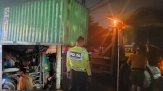 Kelalaian di Jalur Padat. Truk Hantam Motor Parkir hingga Robohkan Warung dan Rumah Warga